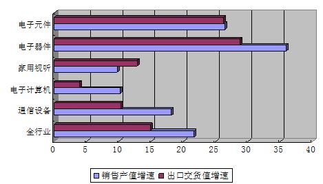 2011年,我國(guó)電子信息制造業(yè)均開(kāi)局良好,呈現(xiàn)平穩(wěn)增長(zhǎng)的態(tài)勢(shì),前兩個(gè)月增加值增長(zhǎng)14.3%,比工業(yè)平均水平高0.2個(gè)百分點(diǎn);實(shí)現(xiàn)銷售產(chǎn)值9706億元,同比增長(zhǎng)21.6%。