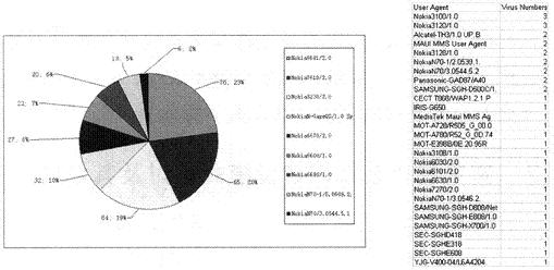 通過GPRS核心網抓包分析,目前用戶感染的彩信病毒類型主要是CommWarrior病毒,A,B,C分別是其的變種類型,具體感染的比例參見圖3。