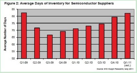 近日消息,據(jù)IHS iSuppli公司的研究,第一季度的過多半導(dǎo)體庫存,幫助半導(dǎo)體產(chǎn)業(yè)避免了組件嚴(yán)重短缺。最初人們擔(dān)憂,日本地震與海嘯會帶來嚴(yán)重的組件短缺問題。