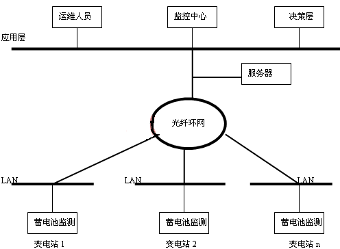 蓄電池在線監(jiān)測還可以利用通訊手段進(jìn)行網(wǎng)絡(luò)化管理(如圖4),將幾個(gè)站或一地區(qū)的蓄電池監(jiān)測通過光纖進(jìn)行組網(wǎng),建立一個(gè)實(shí)時(shí)遠(yuǎn)程智能化蓄電池監(jiān)測網(wǎng)絡(luò)化管理系統(tǒng),以實(shí)現(xiàn)信息集中和遠(yuǎn)程控制,使運(yùn)行檢修人員、相關(guān)人員和管理決策層能夠通過局域網(wǎng)內(nèi)的任何一個(gè)終端用IE瀏覽的方式即可實(shí)時(shí)掌握各變電站蓄電池的運(yùn)行情況及其性能變化趨勢,使蓄電池得到及時(shí)的維護(hù),同時(shí)也為“設(shè)備狀態(tài)檢修”提供可靠依據(jù),將“定期維護(hù)檢修”轉(zhuǎn)變?yōu)?ldquo;狀態(tài)檢修”,從而實(shí)現(xiàn)對蓄電池的科學(xué)化管理,保證系統(tǒng)的可靠、安全運(yùn)行。