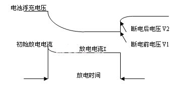 蓄電池在線內(nèi)阻監(jiān)測,通過電池向放電模塊瞬時(shí)放電,測量電池?cái)嚯娝查g的電壓差,計(jì)算電池內(nèi)阻(R內(nèi)阻=△V/I),內(nèi)阻測試原理如圖3。由于在線監(jiān)測中出現(xiàn)的端電壓監(jiān)測誤差、放電過程電流波動(dòng)、斷電前后電壓補(bǔ)捉測量技術(shù),以及在線連接線電量衰檢等問題,內(nèi)阻在線監(jiān)測精度不高。目前,在國內(nèi)美國ABLER便攜式內(nèi)阻測試儀應(yīng)用較多,它的在線式內(nèi)阻測試系統(tǒng)測試精度與便攜式相比稍差,但與目前使用的其他產(chǎn)品相比還是要好些。