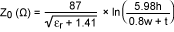式中,εr為電介質(zhì)的介電常數(shù),h為引線距離地層的高度,w為引線寬度,t為引線厚度(圖7)。w/h介于0.1至2.0、εr介于1至15之間時,該公式的計算結果相當準確。