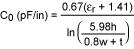 為評估引線長度的影響,確定引線寄生參數(shù)對理想電路的去諧效應更實用。本例中,我們討論雜散電容和電感。用于微帶線的特征電容標準方程為: