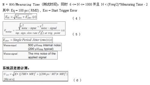 在測(cè)試測(cè)量中測(cè)試精度一直是最為關(guān)心的問(wèn)題。頻率計(jì)作為高精度的頻率和時(shí)間測(cè)試儀表,測(cè)試精度高于普通的頻譜儀和示波器,所以測(cè)試精度的計(jì)算就更加為人關(guān)注。影響測(cè)試精度,或者說(shuō)產(chǎn)生誤差的因素很多,而其中最主要的因素是儀表內(nèi)部時(shí)基穩(wěn)定度、分辨率、觸發(fā)精度及內(nèi)部噪聲等。頻率計(jì)可以用來(lái)測(cè)試如頻率、周期、相位、脈沖等,而其中頻率和周期的測(cè)試占有絕大部分比例,本文主要討論頻率和周期的測(cè)試精度計(jì)算問(wèn)題。