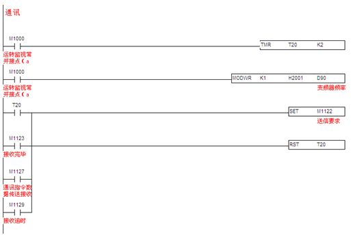 3.2.3通訊程序:臺達SS PLC提供兩個通訊口。本文中,SS PLC的COM1口已與觸摸屏通訊,所以利用SS PLC的COM2 通訊口(此通訊口接口是RS485),支持MODBUS通訊便利指令,編通訊程序像編順序邏輯程序一樣簡單,讓對通訊底層不是很了解的人也能快速上手??焖倬帉慚ODBUS通訊程序,控制如臺達全系列產(chǎn)品,如變頻器、溫控器、伺服等產(chǎn)品。見圖10。