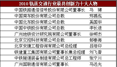 2011年中國軌道交通行業(yè)步入一個井噴式發(fā)展的新階段,中國已經(jīng)成為世界最大的軌道交通市場。眾多企業(yè)是如何與時俱進(jìn)不斷創(chuàng)新?行業(yè)又該如何記錄那些不囿于桎梏勇于創(chuàng)新的先進(jìn)?總結(jié)本年度在軌道交通行業(yè)勇于創(chuàng)新的企業(yè)和人物,由RT《軌道交通》雜志的主辦2011年度軌道交通創(chuàng)新力企業(yè)TOP50評價活動,將向業(yè)界隆重推出以智慧和膽識譜寫創(chuàng)新篇章的軌道交通先驅(qū)!