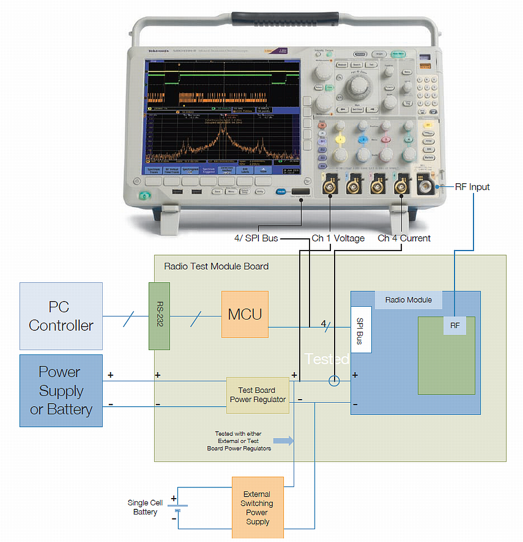 MDO能夠查看時(shí)間相關(guān)的信號(hào),幫助設(shè)計(jì)人員高效診斷和測(cè)試電源和其它噪聲影響。它能夠確認(rèn)正確設(shè)置發(fā)送到無(wú)線電的數(shù)據(jù)命令,并能夠檢查來(lái)自發(fā)射機(jī)和其它電路的雜散輻射。它可以用來(lái)測(cè)量高達(dá)6 GHz的RF信號(hào),另外還可以通過(guò)時(shí)間相關(guān)的采集,查看來(lái)自開(kāi)關(guān)電源和數(shù)字電路的低頻噪聲。