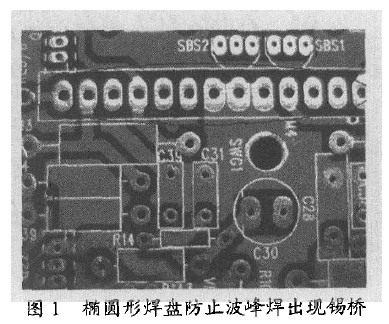 4)對(duì)于具有較高引腳數(shù)的器件如接線座或扁平電纜,應(yīng)使用橢圓形焊盤而不是圓形以防止波峰焊時(shí)出現(xiàn)錫橋(圖1)。