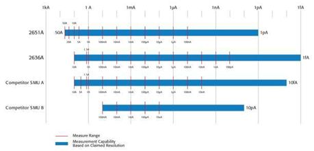 圖1 與競爭對手相比,吉時利SMU有更寬的動態(tài)范圍