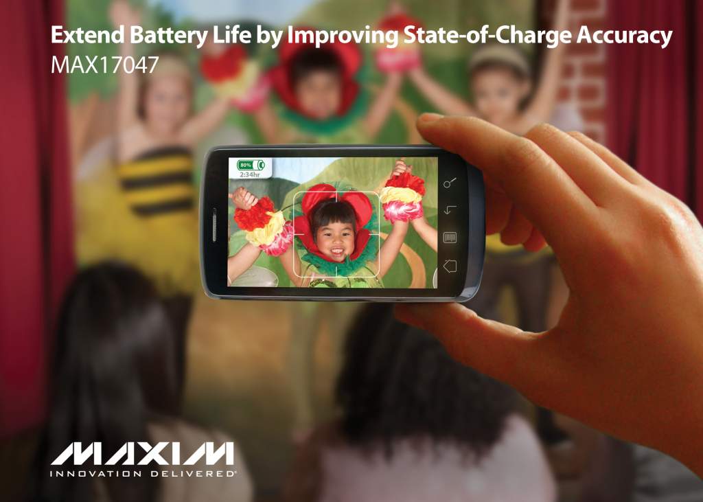 Maxim Integrated Products, Inc 推出用于單節(jié)Li+電池組的電量計(jì)MAX17047。MAX17047采用公司最新的ModelGauge™ m3算法,是業(yè)內(nèi)唯一一款避免了傳統(tǒng)庫侖計(jì)算法中突變修正的庫侖電量計(jì)。與其它庫侖計(jì)相比,該ModelGauge m3 IC使用的檢流電阻更小、外部元件更少,有效節(jié)省了空間和成本。該款I(lǐng)C可理想用于單節(jié)和多節(jié)Li+電池的電量計(jì)算,適用于各種便攜式應(yīng)用(包括:無線手機(jī)、智能電話、平板電腦、電子書、便攜式游戲機(jī)、數(shù)碼相機(jī)、金融終端、便攜式導(dǎo)航設(shè)備以及便攜式醫(yī)療器械)。