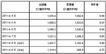 根據(jù)國際半導(dǎo)體設(shè)備材料產(chǎn)業(yè)協(xié)會(huì)(SEMI)最新公布的Book-to-Bill訂單出貨報(bào)告,2011年9月份北美半導(dǎo)體設(shè)備制造商平均訂單金額為9.848億美元,B/B值(Book-to-Bill Ratio,訂單出貨比)為0.75;代表半導(dǎo)體設(shè)備業(yè)者當(dāng)月份出貨100美元,接獲75美元的訂單。