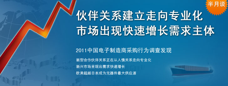 缺貨危機(jī)過后,中國電子系統(tǒng)制造商和電子元器件供應(yīng)商對風(fēng)險共擔(dān)、利益共享的伙伴關(guān)系有了新的理解。 2011中國電子制造商采購行為調(diào)查發(fā)現(xiàn),在供應(yīng)商認(rèn)證與引入過程中建立了系統(tǒng)流程并很好實(shí)施的比例顯著增加;讓供應(yīng)商參與早期產(chǎn)品設(shè)計的比例顯著增加;培養(yǎng)供應(yīng)商的比例顯著增加。合作伙伴關(guān)系建立正在從人情關(guān)系走向更加專業(yè)化和系統(tǒng)化。此外,新興市場在新型伙伴關(guān)系基礎(chǔ)上呈現(xiàn)出需求快速增長。