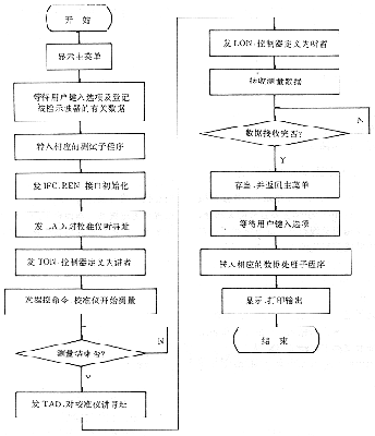 為了提高軟件的可靠性和檢測的精度,本系統(tǒng)采用了模塊化、結(jié)構(gòu)化的設計思想。模塊化使各參數(shù)檢測子程序能獨立完成而不受其它模塊的影響。這種方法使程序在調(diào)試和運行時,具有良好的安全性和可靠性。另外,結(jié)構(gòu)化的順序進行和其判斷功能,使之在程序設計中充分考慮到了各種可能出現(xiàn)的情況,并可自行處理在檢測中出現(xiàn)的一些問題,從而在一定程度上保證了程序的完整性。其軟件的流程圖如下: