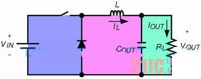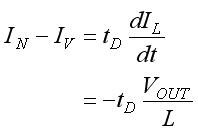 式中的t是時間,而VOUT是電源轉(zhuǎn)換器(如圖1所示)的輸出電壓。當(dāng)L減小時,便會相應(yīng)減少。由于tD不會受ILS、L和VOUT影響,并且VOUT也不受L影響,所以IN會隨著L而下降。這種關(guān)系可用下式表示: