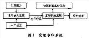 門票是觀看奧運會、演唱會、參加高級會議的入場券。隨著高質(zhì)量圖像輸入輸出設(shè)備的發(fā)展,特別是精度超過1200dpi的彩色噴墨、激光打印機(jī)和高精度彩色復(fù)印機(jī)的出現(xiàn),門票的偽造變得更加容易。所以人們迫切需要一種有效的門票防偽及檢測技術(shù)。傳統(tǒng)的防偽技術(shù),基本上都采用材料防偽,屬于共性化防偽。如果被人仿冒,后果不堪設(shè)想,也存在造價高等缺點。而數(shù)字水印技術(shù)屬于個性化防偽技術(shù),它是與個性特征相結(jié)合,并且不改變成熟的印刷工藝,不改變印刷材料與設(shè)備,不增加印刷成本,是目前較好的防偽技術(shù)。