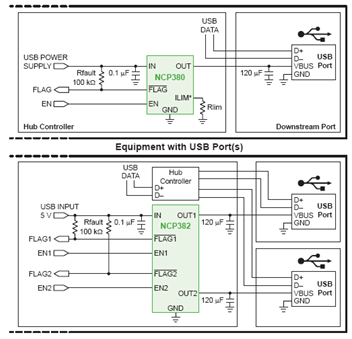 USB負(fù)載開關(guān)提供用于USB主機的過流保護(OCP)。安森美半導(dǎo)體的相關(guān)產(chǎn)品有NCP380、NCP382單、雙通道負(fù)載開關(guān)。這些器件可防止采用USB的設(shè)備端口因短路或過載事件而損壞,其短路檢測時間僅為1微秒。這些器件具有精確的電流限制閾值、固定或可調(diào)電流限制(500 mA至2.1 A),支持在電流平板電腦充電,獲得了UL和CB認(rèn)證。