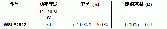 新款WSLP2512 Power Metal Strip電阻:規(guī)格匯總表