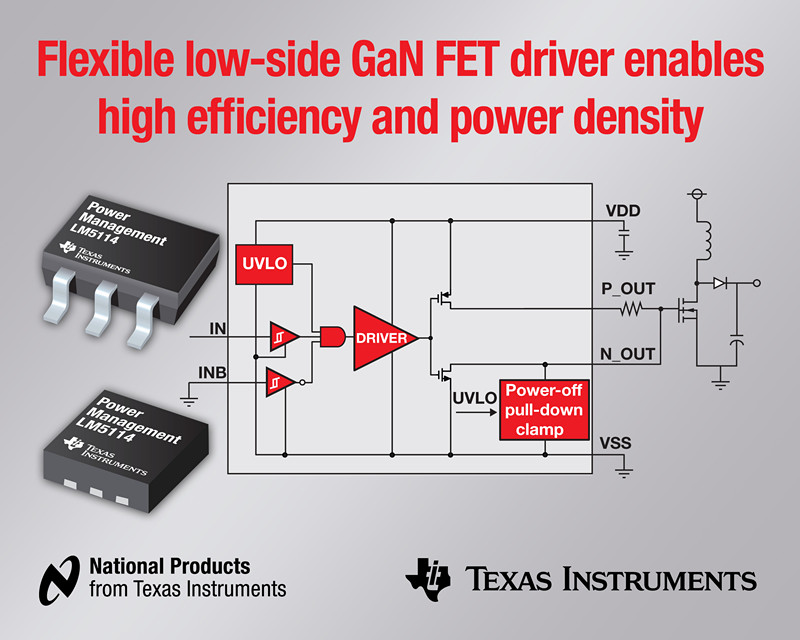日前,德州儀器 (TI) 宣布推出用于配合高密度電源轉(zhuǎn)換器中 MOSFET 與氮化鎵 (GaN) 功率場效應(yīng)晶體管 (FET) 使用的低側(cè)柵極驅(qū)動器。LM5114 可驅(qū)動同步整流器與功率因數(shù)轉(zhuǎn)換器等低側(cè)應(yīng)用中的 GaN FET 與 MOSFET。該系列加上 2011 年推出的業(yè)界首款 100 V 半橋 GaN FET 驅(qū)動器 LM5113,可為高性能電信、網(wǎng)絡(luò)以及數(shù)據(jù)中心應(yīng)用中使用的大功率 GaN FET 與 MOSFET 提供完整的隔離式 DC/DC 轉(zhuǎn)換驅(qū)動器解決方案。