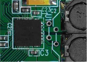 與裸露焊盤相接的敷銅塊應(yīng)該用多個(gè)過孔連到PCB背面的其他敷銅塊上,并應(yīng)該在滿足系統(tǒng)信號走線的要求下具有盡可能大的面積。加寬所有與器件的連線,這將有益于改善系統(tǒng)的散熱性能。雖然IC的引腳并不是主要的散熱通道,但實(shí)際應(yīng)用中仍然會(huì)有少量發(fā)熱。圖3所示的PCB中,寬連線將D類放大器的輸出與圖右側(cè)的兩個(gè)電感相連。在這種情況下,電感的銅芯繞線也可為D類放大器提供額外的散熱通道。雖然對整體熱性能的改善不到10%,但這樣的改善卻會(huì)給系統(tǒng)帶來兩種截然不同的結(jié)果—系統(tǒng)具備較理想的散熱或出現(xiàn)較嚴(yán)重的發(fā)熱。