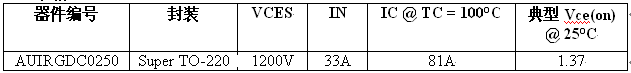 1200V AUIRGDC0250 采用緊湊的 Super TO-220 封裝,低 VCE(on) 可讓該器件降低功耗并實現(xiàn)更高的功率密度,正 VCE(on) 溫度系數(shù)則使其更適合并聯(lián)。此外,AUIRGDC0250 還提供經(jīng)過優(yōu)化的方形反向偏壓安全操作區(qū) (RBSOA)。AUIRGDC0250 的軟開關(guān)特性使其成為幫助客戶符合系統(tǒng)級 EMI 規(guī)范的理想選擇。