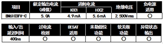 內(nèi)置了車載逆變器電路所要求的全部保護功能:米勒鉗位功能、故障輸出功能、低電壓時誤動作防止功能、熱保護功能、短路保護功能、短路保護時軟關(guān)斷功能。