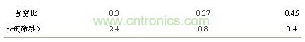 表1不同占空比時toff的變化情況