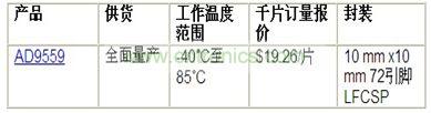 AD9559時(shí)鐘轉(zhuǎn)換器尺寸為10 mm x 10 mm,便于線路卡設(shè)計(jì)人員獲得緊湊、頻率捷變、高性價(jià)比的時(shí)鐘。適合的應(yīng)用包括數(shù)據(jù)通信、新一代有線網(wǎng)絡(luò)應(yīng)用、測試和測量、高速數(shù)據(jù)采集、視頻應(yīng)用以及無線基站控制器。