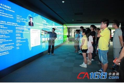 對(duì)臺(tái)達(dá)集團(tuán)有了一定了解之后,南京工程學(xué)院師生一行人來到大樓的展廳參觀。臺(tái)達(dá)展廳展出了臺(tái)達(dá)在自動(dòng)化、新能源、網(wǎng)絡(luò)動(dòng)力、軌道交通等領(lǐng)域的最新技術(shù)和產(chǎn)品。學(xué)生們對(duì)于這些產(chǎn)品表現(xiàn)出了極大的興趣,他們有的仔細(xì)研讀方案介紹,有些積極提問,紛紛用自己的方式珍惜這個(gè)難能可貴的參觀學(xué)習(xí)機(jī)會(huì)。
