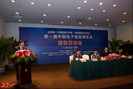 2012年11月6日下午,工業(yè)和信息化部與深圳市人民政府在北京召開新聞發(fā)布會,宣布2013年4月10日至12日在深圳市共同舉辦第一屆中國電子信息博覽會。工業(yè)和信息化部電子信息司副司長、中國電子信息博覽會組委會辦公室副主任安筱鵬出席會議并介紹了籌備舉辦第一屆中國電子信息博覽會的總體情況;深圳市經(jīng)濟貿易和信息化委員會副主任、中國電子信息博覽會組委會辦公室副主任賈興東介紹了展館的總體安排;中國電子器材總公司副總經(jīng)理、中國電子信息博覽會組委會辦公室副主任兼秘書長陳雯海,深圳市平板行業(yè)協(xié)會常務副會長、中國電子信息博覽會組委會辦公室副主任兼副秘書長許生介紹招展的進展情況。會議由工業(yè)和信息化部辦公廳新聞處處長張紅宇主持。新華社、中央人民廣播電臺、中央電視臺、中國電子報、人民郵電報、中國工業(yè)報等中央媒體和業(yè)內媒體,以及業(yè)內相關行業(yè)協(xié)會和重點企業(yè)參加了新聞發(fā)布會。