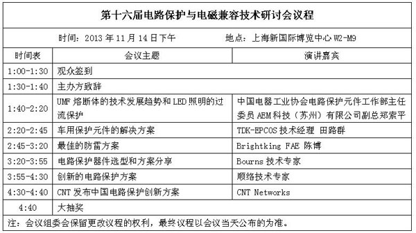 【導(dǎo)讀】2013年11月14日,第十六屆電路保護(hù)與電磁兼容技術(shù)研討會(huì)在上海開(kāi)幕。來(lái)自Bourns、AEM科技 、TDK-EPCOS、君耀電子和順絡(luò)電子等全球知名專家將現(xiàn)場(chǎng)展示最新的產(chǎn)品,針對(duì)工業(yè)、通信、汽車等長(zhǎng)三角地區(qū)的優(yōu)勢(shì)產(chǎn)業(yè)提供最新解決方案,與廣大長(zhǎng)三角地區(qū)的電子產(chǎn)品設(shè)計(jì)開(kāi)發(fā)人員深入互動(dòng)。