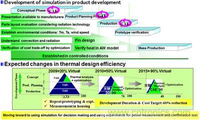 自2006年起,電裝一直在加強對模擬軟件的使用,以便減少花在物理原型方面的時間和成本。2009年,對模擬與物理原型的使用之比為20:80,到2010年已提高到50:50。2012年則達到了70:30。這種轉(zhuǎn)變使熱設(shè)計相關(guān)的時間和成本在不到六年的時間內(nèi)降低了50%。電裝計劃進一步加大對模擬的使用,到2015年將這一比例提高到90:10以上。
