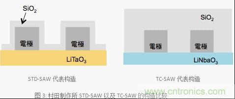 針對這個課題所提出的解決方案有望近年成為降低頻率溫度依賴性的技術(shù)。村田制作所采用特有的技術(shù)研發(fā)出了降低頻率溫度依賴性的產(chǎn)品TC-SAW,除此之外還有Standard (STD) –SAW。