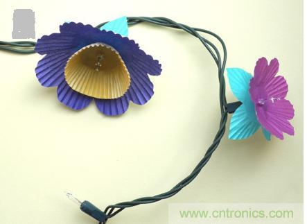 將花朵套在葉子上面,再將霓虹燈這樣子插在中間位置
