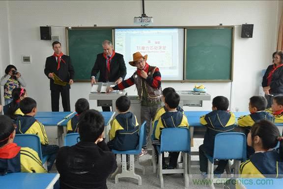 在本次活動(dòng)上,TI同時(shí)開展了“TI魔力芯動(dòng)課堂”特色科學(xué)興趣課程。來自TI的志愿者們?cè)O(shè)計(jì)了電子科學(xué)相關(guān)的趣味教具和課件,并親自為小學(xué)生們授課。該課程的設(shè)計(jì)旨在借由益智的電子教具,通過動(dòng)手實(shí)踐使學(xué)生體驗(yàn)電子科學(xué)的奧妙。此次,TI高級(jí)副總裁、全球技術(shù)與制造部總經(jīng)理Kevin Ritchie也擔(dān)任了志愿者講師,并生動(dòng)形象的向小學(xué)生介紹了晶圓、芯片、電路板和電子產(chǎn)品的關(guān)系。