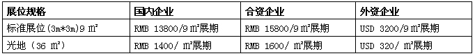 標(biāo)準(zhǔn)展位費(fèi)用:(注:雙面開口加20%開口費(fèi))
