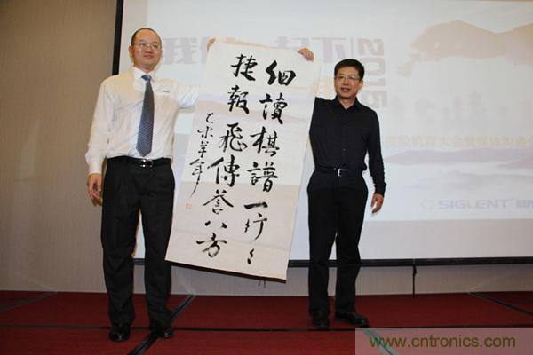 在頒獎(jiǎng)典禮的最后,來(lái)自長(zhǎng)春市百金通科貿(mào)有限公司的唐總為本次經(jīng)銷(xiāo)商大會(huì)題字留念,精湛的書(shū)法技藝贏得了滿(mǎn)堂彩,美好的祝愿溫暖人心。