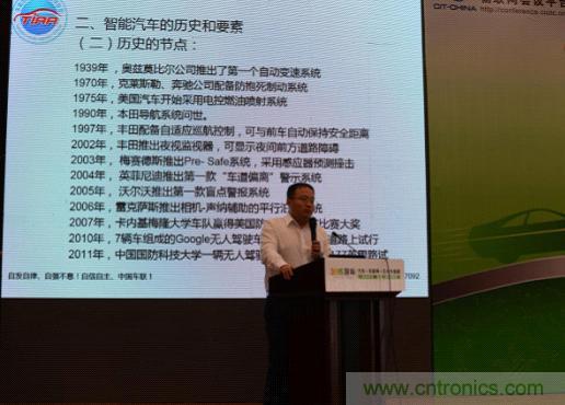 圖4:車載信息服務(wù)產(chǎn)業(yè)應(yīng)用聯(lián)盟秘書長(zhǎng)龐春霖在論壇發(fā)表