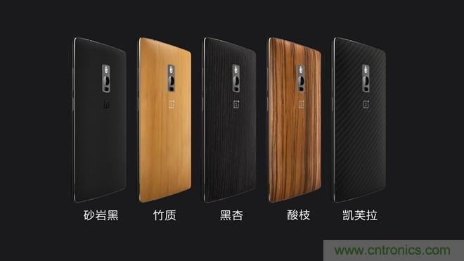 外觀上一加2以1代產(chǎn)品為基礎(chǔ),在手感、質(zhì)感上兩個詞上下功夫。新機采用金屬材質(zhì)邊框,并調(diào)整邊框背面弧度使之更貼合;材質(zhì)方面,新品擁有砂巖黑、竹質(zhì)、黑杏、酸枝、凱芙拉共計五種后殼版本。盡顯復(fù)古,原始,典雅風格。側(cè)面金屬的加入和可更換后殼,讓手感做出提升和差異化。