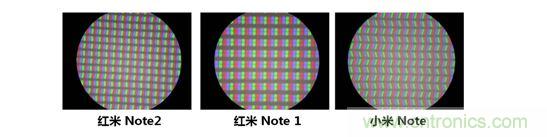 我們?cè)賮砜匆幌嘛@示屏的像素結(jié)構(gòu),從像素的排列來看,這個(gè)屏幕確實(shí)是IPS技術(shù)的,像素比紅米Note1有了大大的提升。