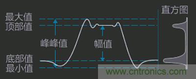 一旦測(cè)出Vtop 和Vbase,示波器就可以對(duì)電壓和時(shí)間以及其他參數(shù)進(jìn)行自動(dòng)測(cè)量。常見(jiàn)的參數(shù)有,峰峰值、幅值、上升時(shí)間、下降時(shí)間、脈寬等。