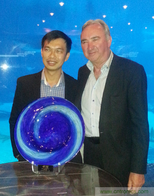 代表赫聯(lián)電子接受“TE Connectivity 2015年度最佳分銷商”獎(jiǎng)項(xiàng)
