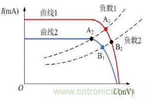 最大功率點A1→最大功率點B1(條件:將系統(tǒng)負(fù)載特性由負(fù)載1改為負(fù)載2)