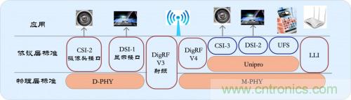 MIPI聯(lián)盟有不同的工作組,分別定義一系列的手機內(nèi)部接口標(biāo)準(zhǔn),如攝像頭接口CSI、顯示接口DSI、射頻接口DigRF等。統(tǒng)一接口標(biāo)準(zhǔn)的好處是手機廠商可以根據(jù)需要從市面上靈活選擇不同的芯片和模組,方便快捷的進行外觀和功能的設(shè)計。