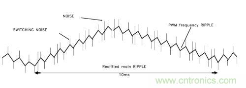--工頻噪聲(Recfified main RIPPLE),一般是交流供電頻率的兩倍。我國供電頻率是50Hz,所以它的紋波主要來自工頻50Hz變壓器。大小取決于整流電路的類型。對(duì)于半波整流,50Hz;對(duì)于全波整流,是100Hz;對(duì)于三相全波整流,300Hz。