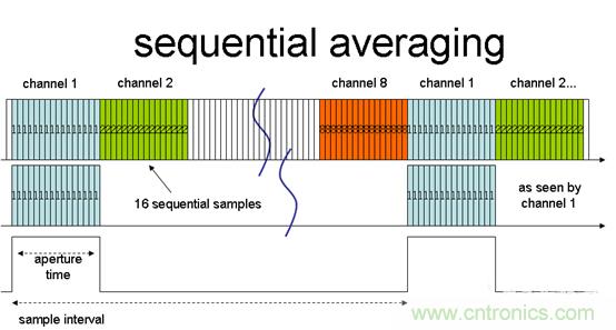 這種傳統(tǒng)的對單一通道信號進行多次轉換后才轉到下一個通道的平均模型被稱為序列平均。這種方法存在一些限制,主要問題在于會降低多通道環(huán)境中的可用采樣率,包括被平均的通道和序列中不需要平均的通道。