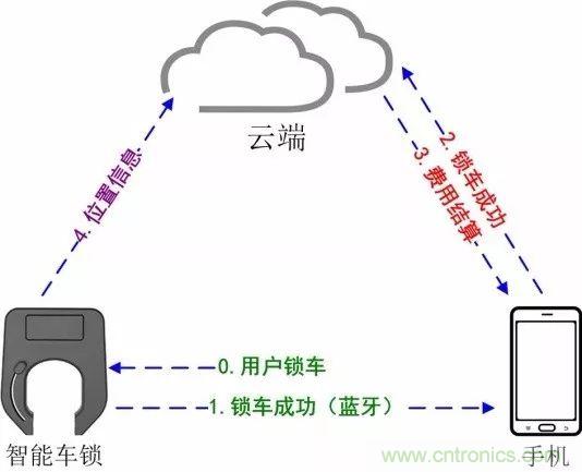 共享單車應(yīng)用,其實(shí)就是通過“單車-云端-用戶手機(jī)”之間的信息傳遞來完成的,其中最關(guān)鍵的是解閉智能鎖的過程。目前,最新的“GPS定位+藍(lán)牙”解鎖和還車模式已經(jīng)比較普遍。