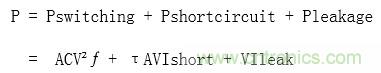 晶體管在跳變過程中,短暫的電源和地導(dǎo)通帶來的短路功耗;以及由漏電流引起的漏電功耗。其中跳變功耗和短路功耗為動(dòng)態(tài)功耗,漏電功耗為靜態(tài)功耗。以下是SoC(即CPU)功耗分析的經(jīng)典公式: