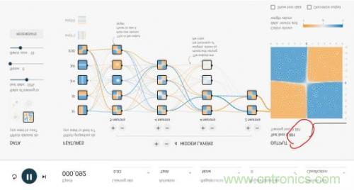 隱層(HIDDEN LAYERS)可以隨意設(shè)置層數(shù),每個隱層可以設(shè)置神經(jīng)元數(shù)。實際上神經(jīng)網(wǎng)絡(luò)并不是在計算力足夠的情況下,層數(shù)越多越好或者每層神經(jīng)元越多越好。好的神經(jīng)網(wǎng)絡(luò)架構(gòu)模型是很難找到的。本文后面我們會重點講幾個CNN經(jīng)典網(wǎng)絡(luò)模型。然而,在這個例子中,多一些隱層和神經(jīng)元可以更好地劃分。
