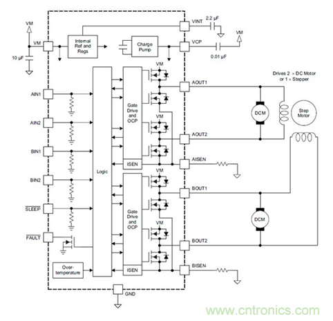 DRV8833:具有電機電流控制和低RDSon 360的雙H橋電機驅(qū)動器毫歐。