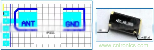 陶瓷天線是另外一種適合于藍牙裝置使用的小型化天線。陶瓷天線的種類分為塊狀陶瓷天線和多層陶瓷天線。由于陶瓷本身介電常數(shù)較PCB電路板高,所以使用陶瓷天線能有效縮小天線尺寸,在介電損耗方面,陶瓷介質(zhì)也比PCB電路板的介電損失小,所以非常適合低耗電率的的藍牙模塊中使用。在 PCB設計時,天線周圍要凈空就可以了,特別注意不能敷銅。如下圖: